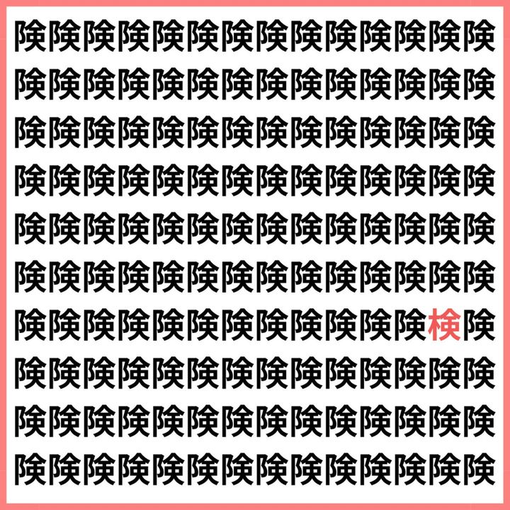 険しい顔で探してみよう【1文字だけ違う】漢字間違い探しで脳トレ、何秒で見つかる?