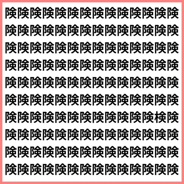 たくさんの「険」の中に、1文字だけ違う漢字が混ざっています。