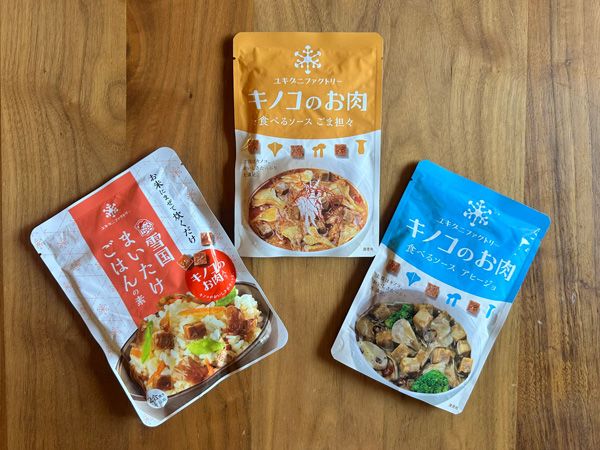 最後に食べたのは、「雪国まいたけごはんの素 キノコのお肉入り」。炊飯器に入れて炊くだけで、まいたけのうま味が詰まった炊き込みごはんが完成する便利な一品です。