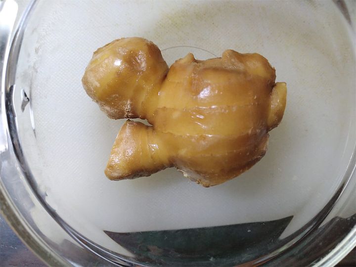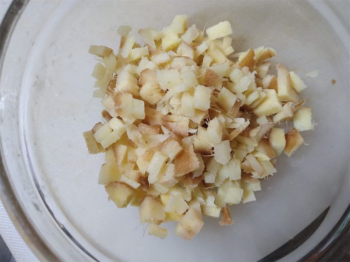 3.しょうがは皮をこそぎ落としてみじん切りにする。