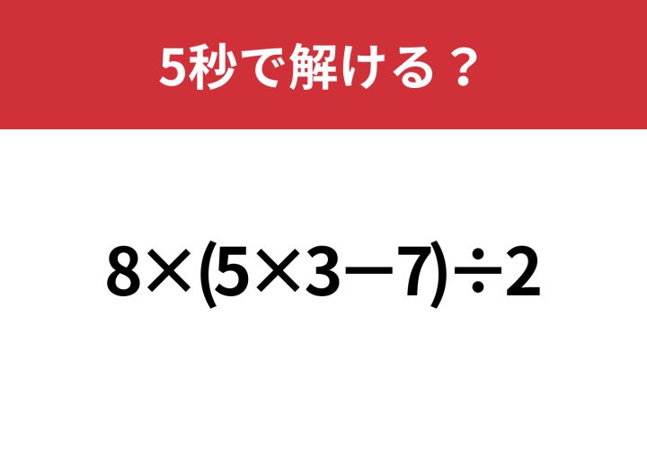 どこから計算するのが正解?「8×(5×3−7)÷2」5秒で解ける?