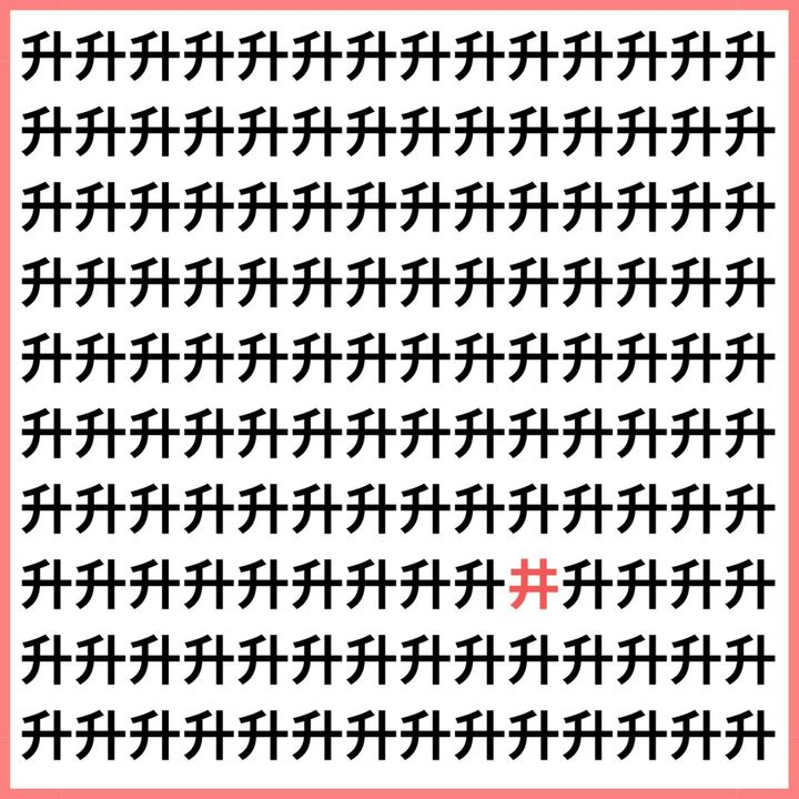 たくさんの「升」の中に、1文字だけ違う漢字が混ざっています。