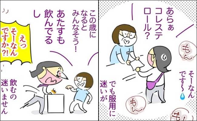 健康診断でLDL(悪玉)コレステロール値が4年前よりも高くなっていることが判明したへそさん。意を決して行った病院で「薬を飲むか飲まないかは自分次第だ」と言われました。