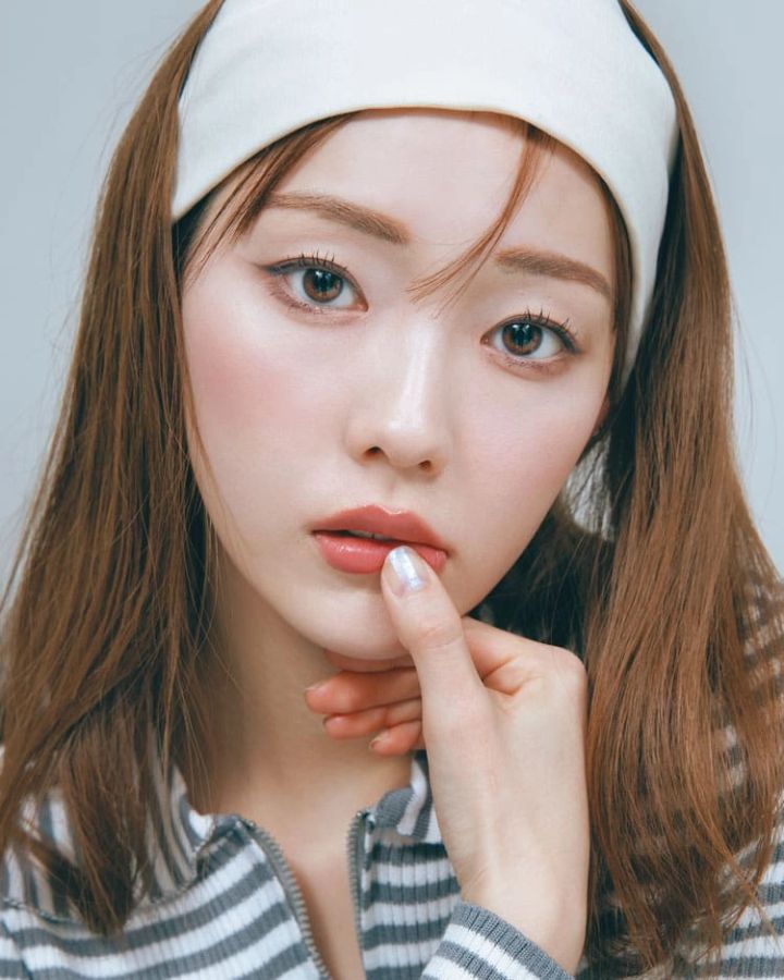 広めにつけたチークで幼い雰囲気に
