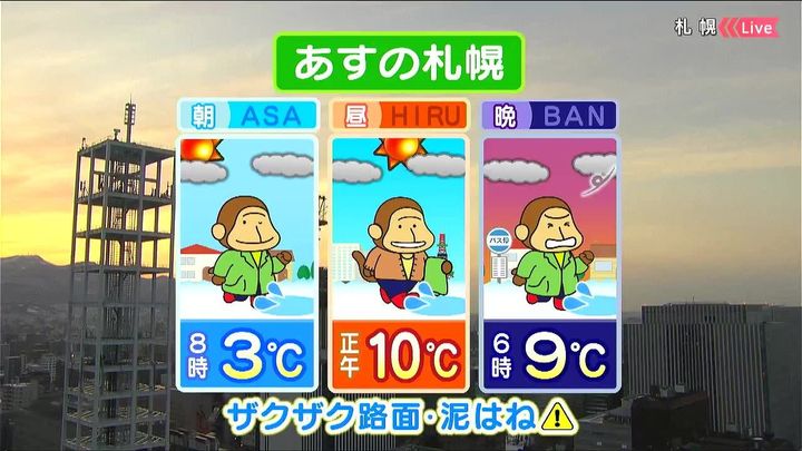 12日の札幌です!朝昼晩の天気をもんすけでお伝えします!