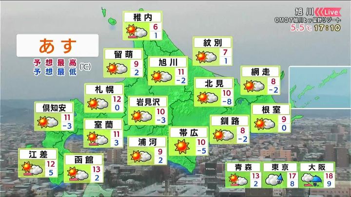 ※11日午後5時時点の情報です。最新の気象情報は、HBCウェザーセンターのホームページなどでご確認ください。HBCは気象庁の認可を2001年に得て以来、民間気象会社の一つとして「HBCの独自予報」を発信しています。