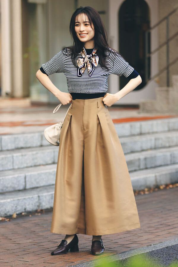 ローファー¥7,700/オリエンタルトラフィック(ダブルエー) スカーフ付きニット¥15,400/SNIDEL パンツ¥26,400/アルページュ ストーリー バッグ¥110,000/J&M デヴィッドソン(J&M デヴィッドソン カスタマーセンター)
