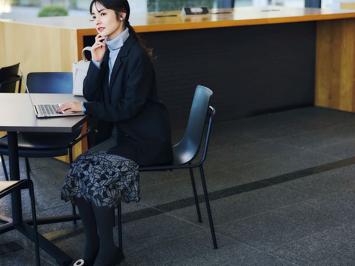 信頼感を引き立たせるテーラードジャケットをクラシカルにまとって【先輩OLの華やか通勤服】