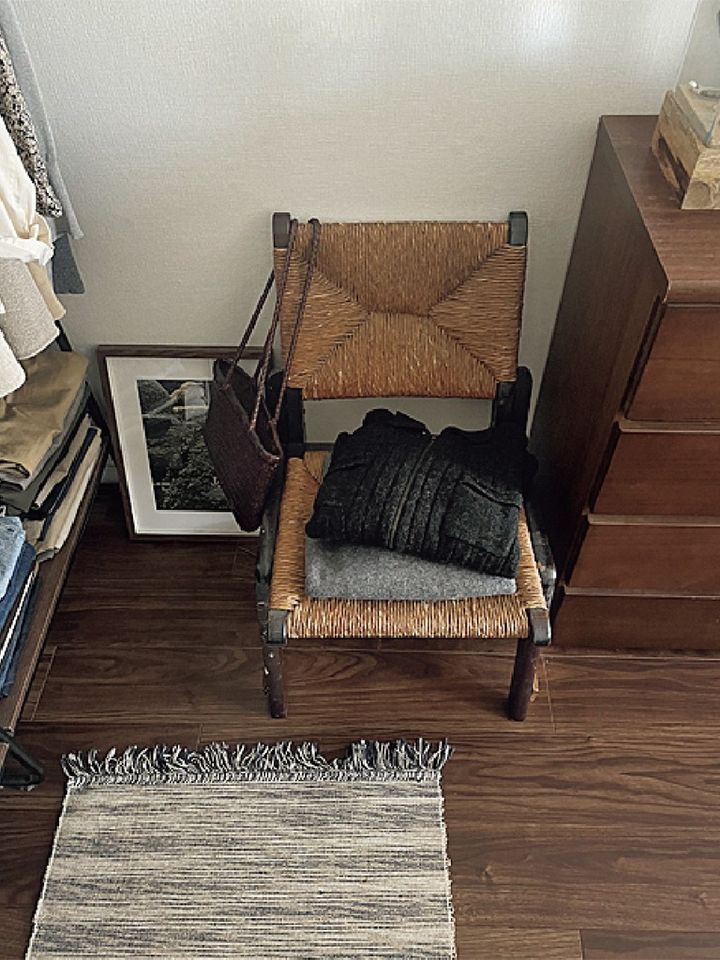 「ニットは毎年“見せる収納”派。どこにあるかわかりやすいうえに、何より見栄えがいいからスタイリングを考えるのも楽しくなります。よく着るニットやカーディガンはラック横の椅子に畳んで手にとりやすく。」(フリーランスPR/SNSディレクター・rinaさん @komi_74)