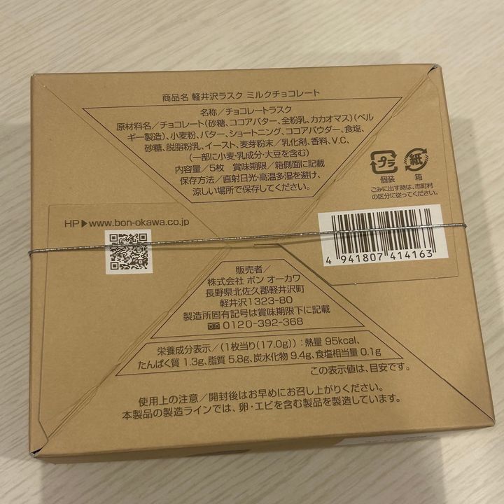 【軽井沢お土産】冬季限定の軽井沢ラスク ミルクチョコレートが美味しい!