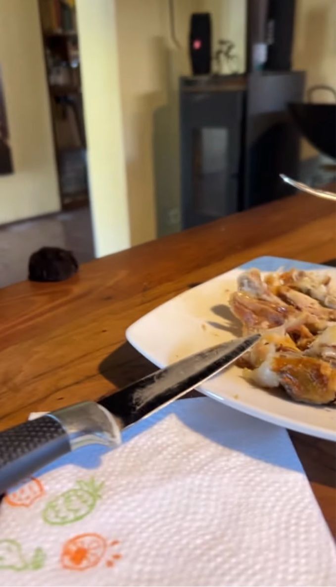 ネコのこの大胆な行動に「誰かさんはチキンが大好物みたいです」「『チキンをちょうだい!』と言っています」「とってもいい香りがするようです」といった声が寄せられていました。