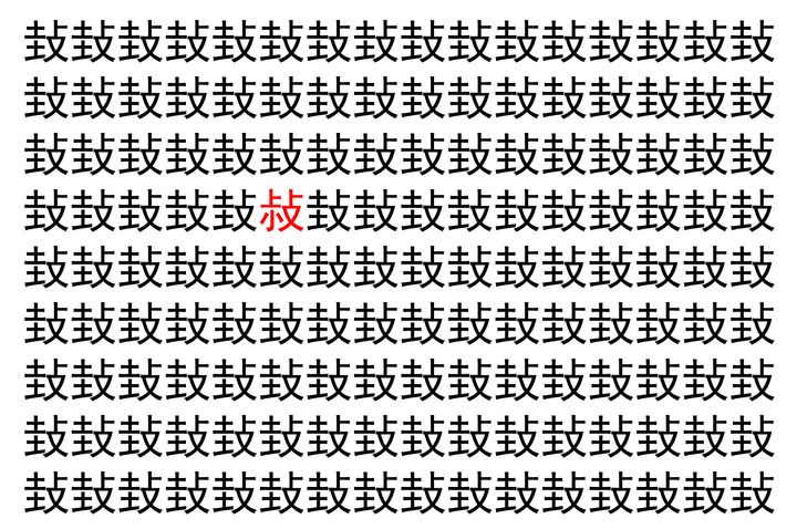 【脳トレ】「㪈」の中に紛れて1つ違う文字がある!?あなたは何秒で探し出せるかな??【違う文字を探せ!】