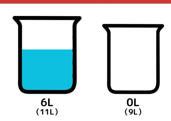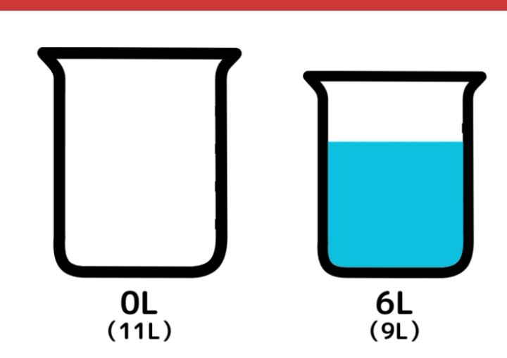 再び11L容器に入っていた6Lの水を9L容器に移します。