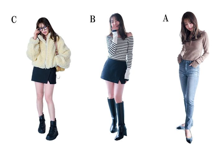 B:ZARAの台形スカートは、私のコンプレックスの太ももを上手にカバーしてくれるmy best美脚スカート。ZARAのミニスカは大人がトライしやすい絶妙な丈感と、ボディラインを拾いすぎない素材感が優秀で毎年チェックしてます。ボーダートップスは、uncrave。