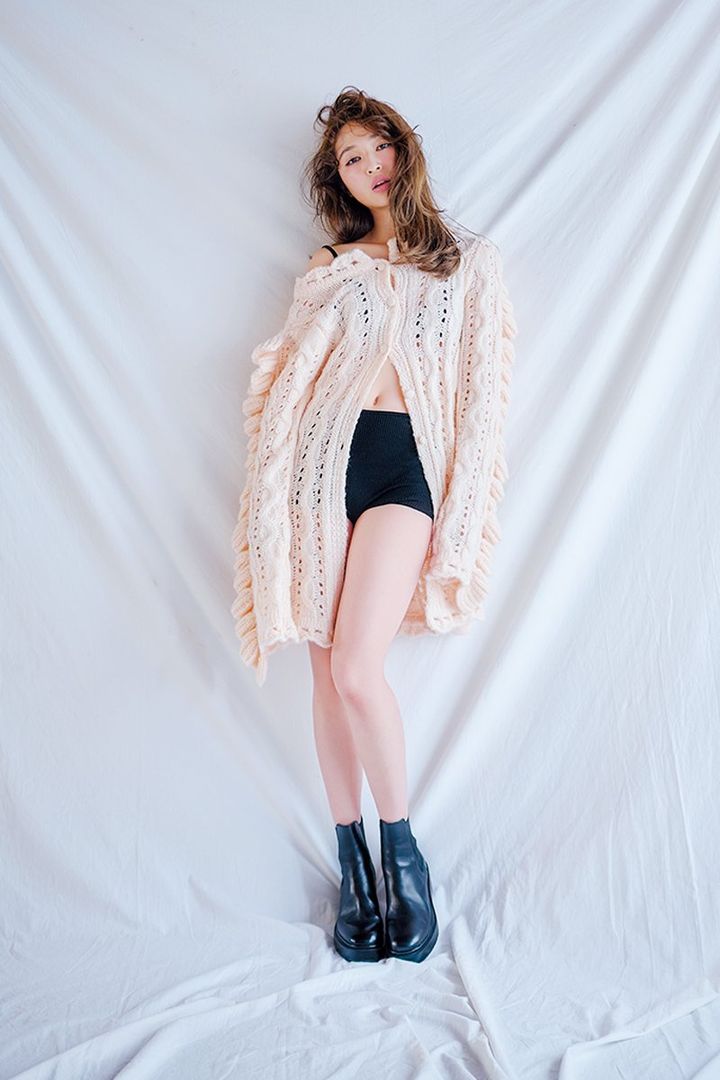 上西星来。ar1.2月合併号より ニット¥31,900/シーエ(ルー プ トーキョウ) スカート¥27,5 00/ロザリームーン(ロザリ ー) ソックス¥990/靴下屋 (タビオ) ボリュームローファ ー¥21,450/ダイアナ(ダイア ナ 銀座本店)