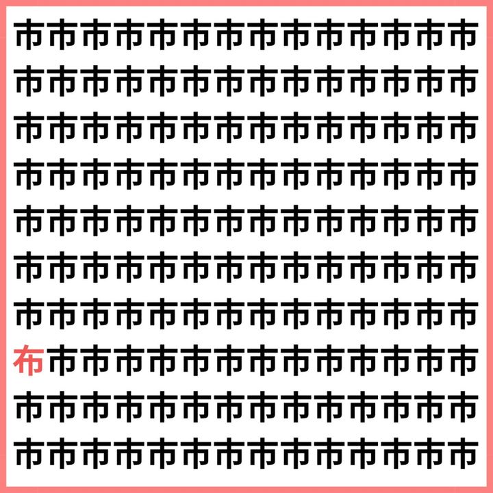 たくさんの「市」の中に、1文字だけ違う漢字が混ざっています。