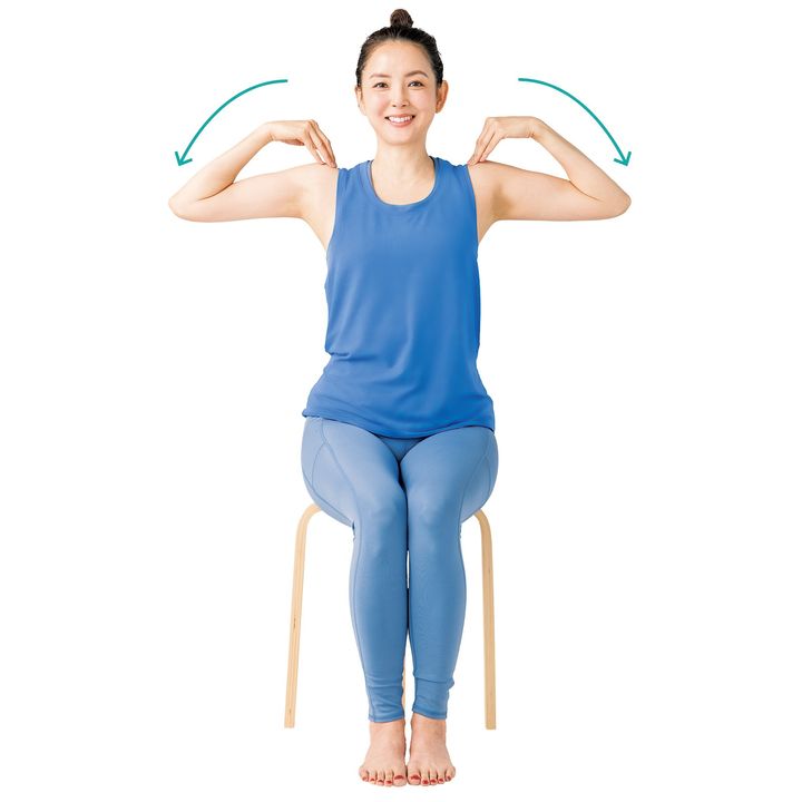 ③上げた肘を横に開き肩と同じ位置で止める。①~③の動きを1分間×朝晩2回行う。