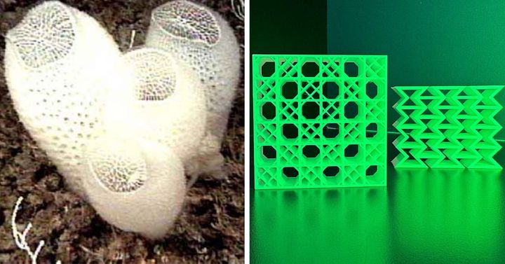 海綿動物にヒントを得たこの新構造(左)は、従来の格子構造(右)よりもはるかに強く、破損しにくい / Credit:RMIT