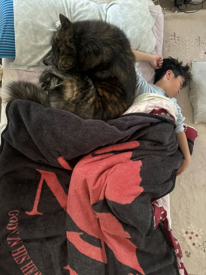 大きくなっても一緒に寝たい愛犬に45万いいね「気持ちは小型」「仲良し兄弟」