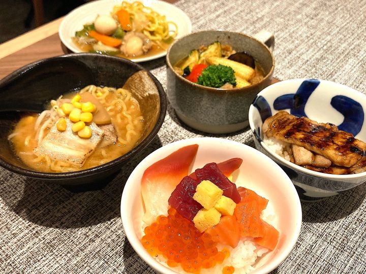オーダーするとできたての熱々を座席まで運んでくれるラーメンと豚丼は、小盛りサイズになっています。ラーメンは札幌味噌、函館塩、旭川醤油が日替わりで登場します。