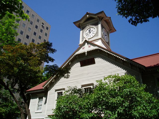 北海道大学の前身である旧札幌農学校の演武場として、初代教頭クラーク博士の提案により明治11年(1878)に建築。明治14年(1881)、時計塔を付設してボストン・ハワード社製の振り子式時計が設置され、今も毎正時に澄んだ鐘の音色を響かせて札幌の街に時を告げます。