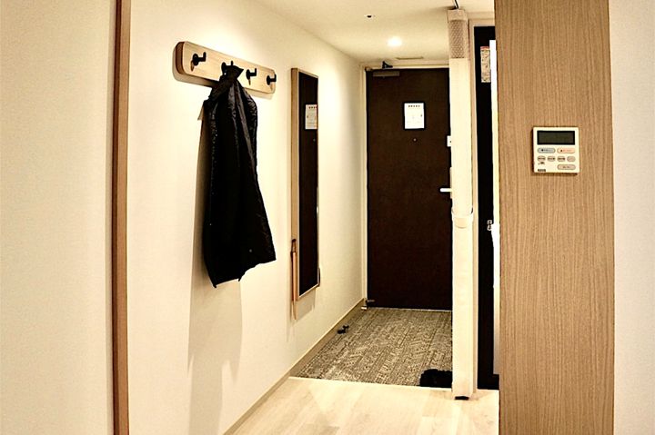 冬の北海道は厚手のコート類がマスト。洋服の収納スペースとは別にコート類をかけるフックも用意されています。