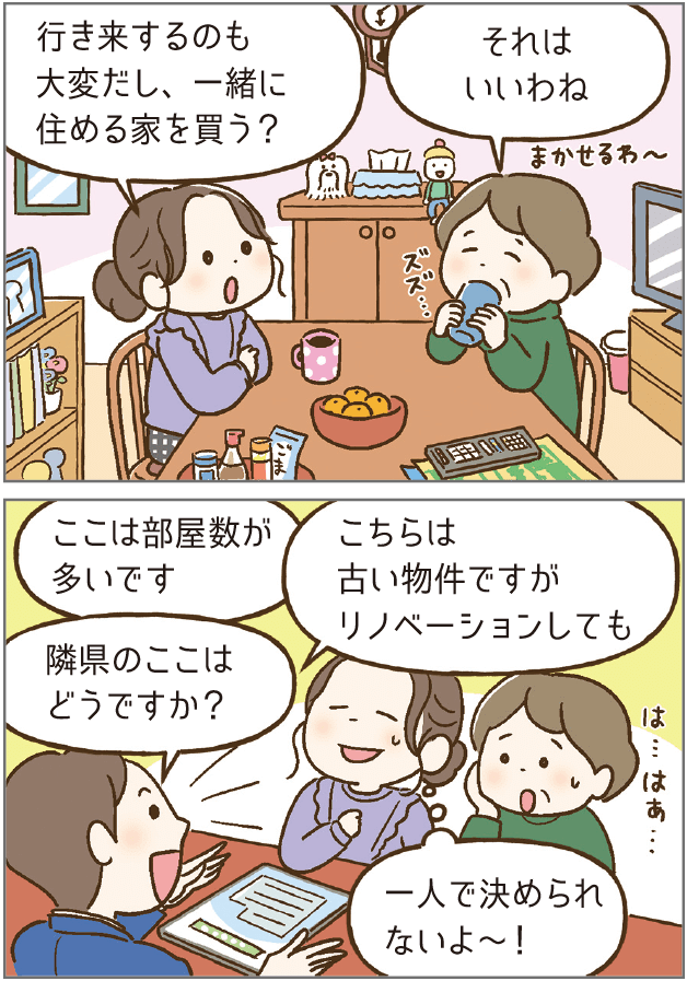 週末は実家で暮らし、平日は仕事のため別に部屋を借りて一人暮らしをしています。父親が他界し、一軒家に母親一人が住むことになったのをきっかけに、私と母で一緒に住めるマンション購入を考えました。