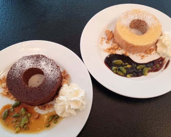 左はショコラ&チョコ。右はプレーン&チョコです。バウムクーヘンの種類とソースでの組み合わせで6種類のラインナップ。迷いましてこの2つをチョイス‼