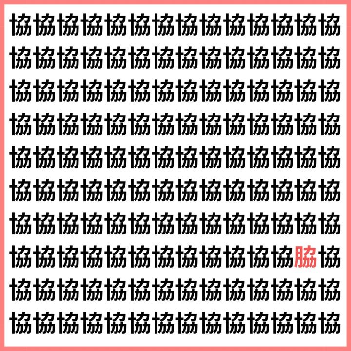 たくさんの「協」の中に、1文字だけ違う漢字が混ざっています。
