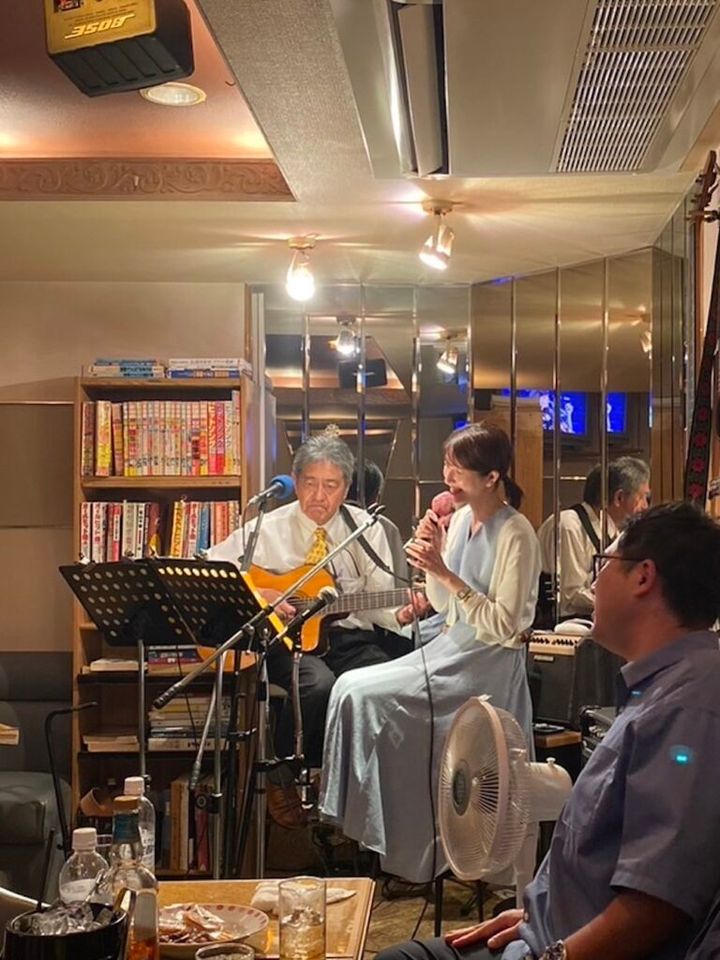 このような素晴らしいライブのあとは非常に興奮し、感化されます。プロの演奏を聴いて自分たちもアウトプットをしたくなり、ライブのあとは毎回、赤坂のスナックに移動。満足するまで歌ってギターなんかも弾いちゃって。最高のひと時でした。