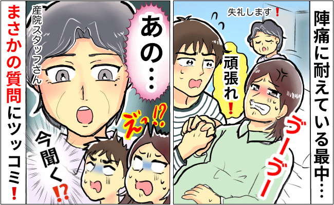 「あの…」お産が進まずいきみ逃しに苦しんでいた私。えっ?産院のスタッフさんから衝撃の質問とは!?