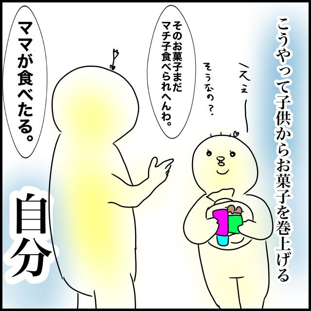 2. 大人げないママでごめん。娘がお菓子を貰った瞬間にどれを貰うか吟味してしまう自分が嫌|アツアゲの育児絵日記