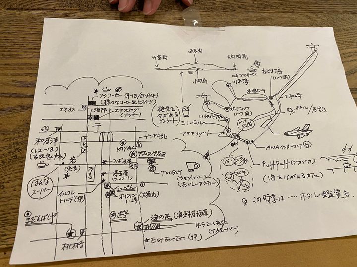 こちらは、店員さんにもらった地図です。おすすめのカフェなど親切に教えてくれて大感謝。