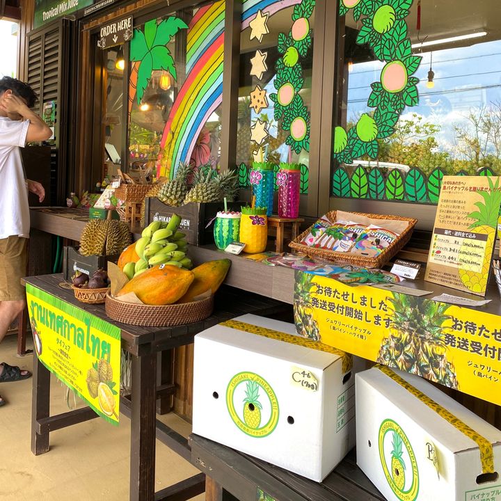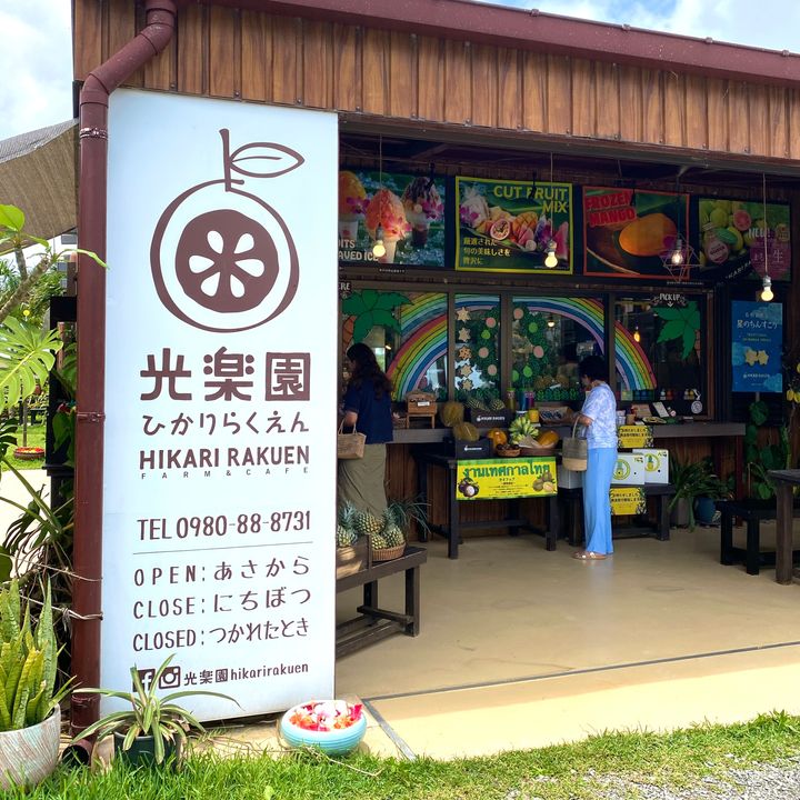 光楽園は、自家栽培グァバをメインに、石垣島で育ったトロピカルフルーツを使用したジュース、スムージー、フルーツシェイブアイス(かき氷)などを販売しているお店。