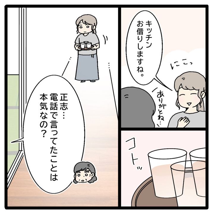 すると、「・・・」「・・・」「・・・」押し黙る3人に、「なんだろ・・この気まずい空気・・」理恵さんの心の中はモヤモヤ。すると、「えっと、お茶でも淹れようかね~」と義母が言い、「あっ、私がやります!」と理恵さんが言い、