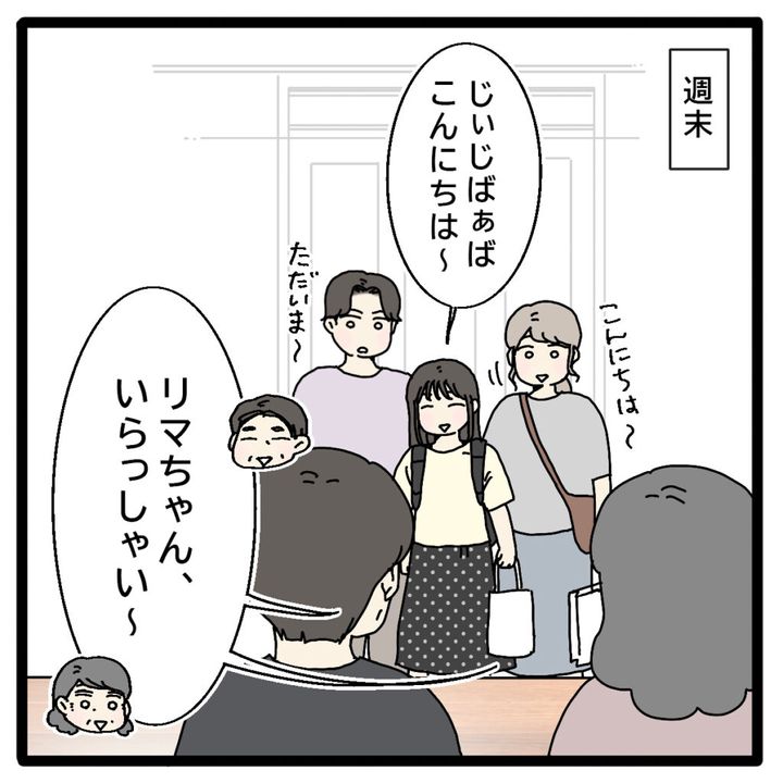 「じぃじ、ばぁばこんにちは~」「こんにちは~」「ただいま~」と挨拶すると、「リマちゃん、いらっしゃい~」義母が明るく出迎えてくれました。