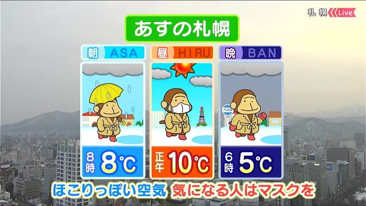 あすの札幌です!朝昼晩の天気をもんすけでお伝えします!