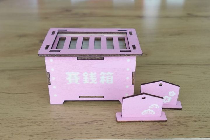完成です!なんと、絵馬まで入っていました。「ライブのチケット当たりますように」とか、「推しと目が合いますように」なんて、書いて推しの写真とともに祀ってはいかがでしょう。