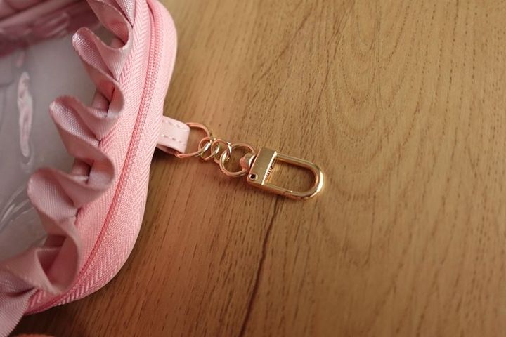 クリアだからデコりやすくて、入れ方も自由。完全に平面にオープンできて、スナップボタンで留めるだけなので、使い方はとっても簡単。ボタンやカラビナの色を推しカラーで揃えて楽しもう!