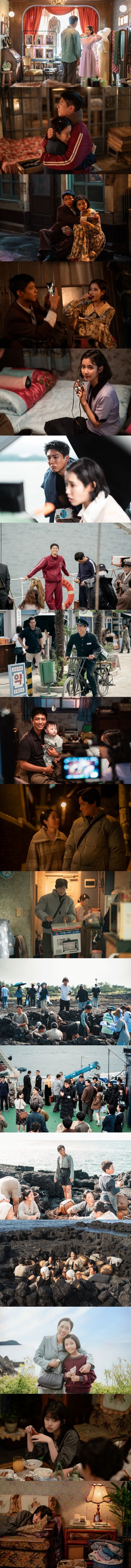 現場で熱心に演出を指揮するキム・ウォンソク監督の姿からは、彼の情熱が伝わり、今後の展開への期待がさらに高まる。海女の叔母たちチュンス(演者チャ・ミギョン)、ヤンイム(演者イ・スミ)、ギョンジャ(演者ペク・ジウォン)、オ・エスンの母親チョン・グァンネ役のヨム・ヘラン、幼いオ・エスン役のキム・テヨンが笑顔を見せるスチールは、楽しい撮影現場の雰囲気をそのまま映し出している。また、クムミョン(演者IU)のスチールは、2幕で本格的に展開される彼の物語への期待を高める。