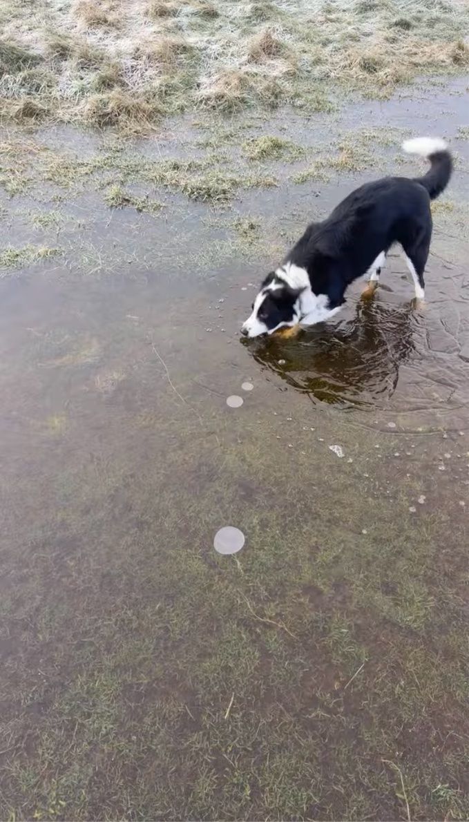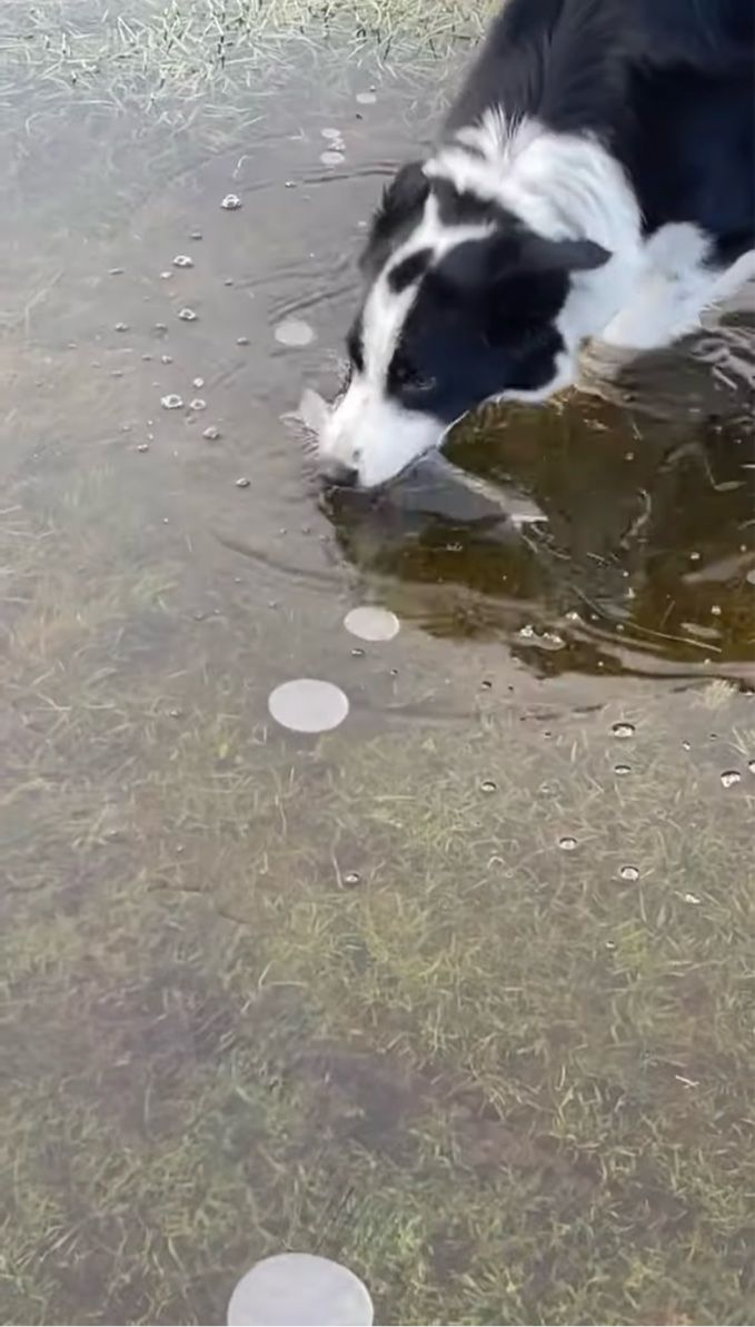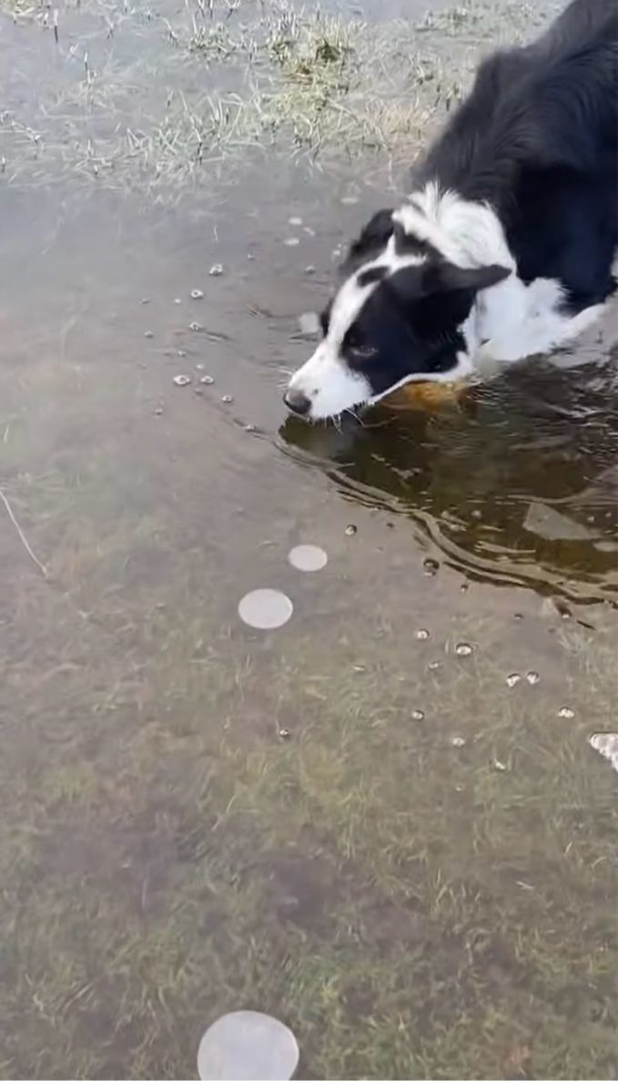 ボーダーコリーが池の水をバリバリ?・・夢中でかじっていたのは氷だ!【海外・動画】