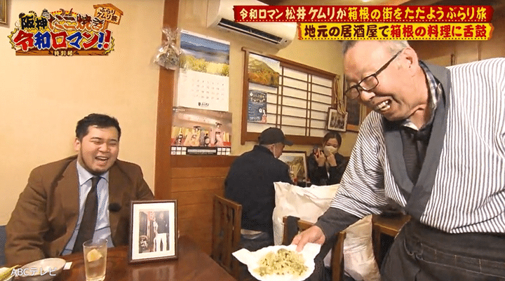 令和ロマンの冠番組『阪神・たこ焼き・令和ロマン!!』シーズン2の特別編「ぶらりケムリ旅」(ABCテレビ)で、関東有数の温泉街で知られる箱根にやってきた松井ケムリ。オープニングトークで松井は、「M-1で(髙比良)くるまくんが言っていた『終わらせましょう』の意味が変わってきてしまったんですけど、1人で今回はロケさせていただきたいと思います」と、いきなりブラックジョークで笑いを誘った。
