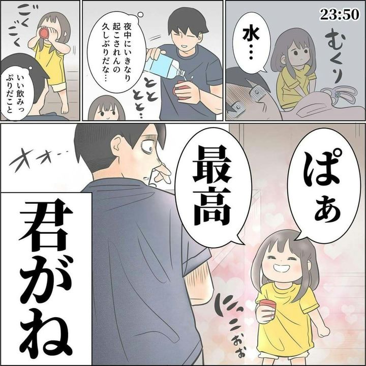 子どもたちとの日常には、幸せな瞬間があふれています。朝起きてから寝る時まで、子どもたちとの時間を大切に過ごしたいゆーぱぱさんの思いが伝わってくる作品です。いつかこんな幸せな日々にも、「あぁ……こんな日があったな」と懐かしむ時がきます。そして、その瞬間がどれほどかけがえのないものだったか、後になって気づくのです。