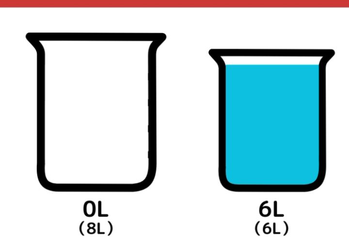 3. 【クイズ】4ステップで答えまで辿り着ける!「8Lと6Lの容器で4L」をはかるには?