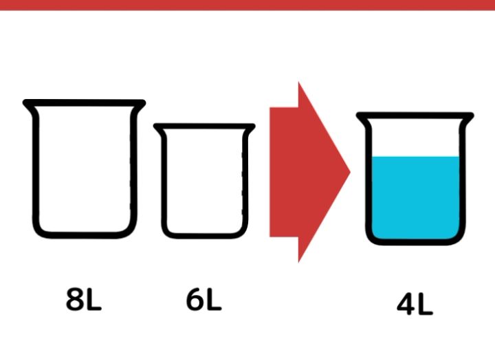 【クイズ】4ステップで答えまで辿り着ける!「8Lと6Lの容器で4L」をはかるには?