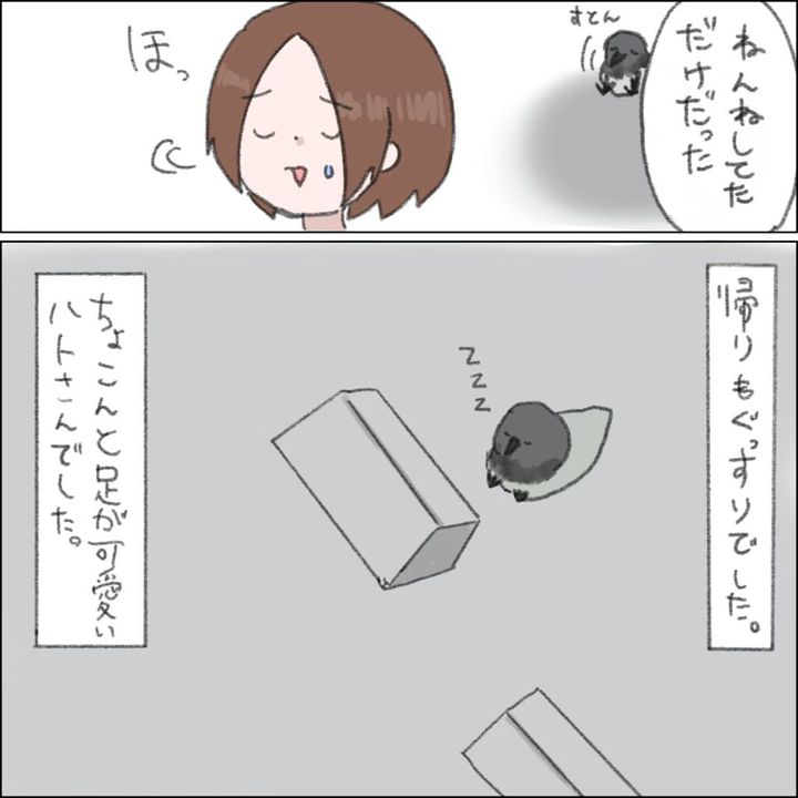 3. 微動だにしないハトを心配したら熟睡中でホッ。ハト好き息子とお出かけ中に出会った可愛いハト|ねむりひつじの子育て絵日記