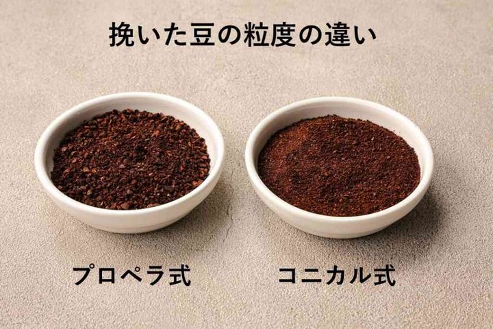 円錐状のステンレス刃で、豆を均一に挽くことができる。