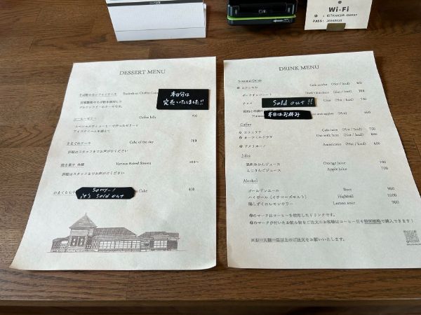 カフェメニューがこちら。 そば粉を使ったスイーツがあるのも、お蕎麦屋さん併設ならではです。