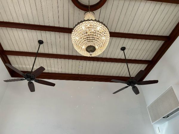 洋館に足を踏み入れてみると、おしゃれで温かみのある雰囲気。見上げれば、輝くシャンデリアが照らします。