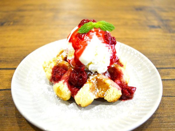 本日のデザートはコチラです。このデザートは見た目も可愛くてミニワッフルにアイスと私の好きな感じで大満足でしたよ♪